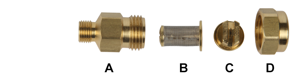 Assemblies include stainless steel bracket, spray nozzle, choice of spray tip, tip retainer, check valve, 1/8″ male elbow, mounting screw, and stainless steel washer. (Requires ¼-20 tapped holes for mounting).