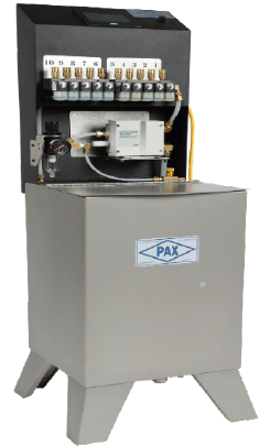 Each solenoid valve can be independently controlled and may be programmed to spray at different intervals, and for different durations (minimum 20 milli-seconds) during a press cycle. Pax’s optional PLC control or an alternate, existing control be utilized to operate the system.