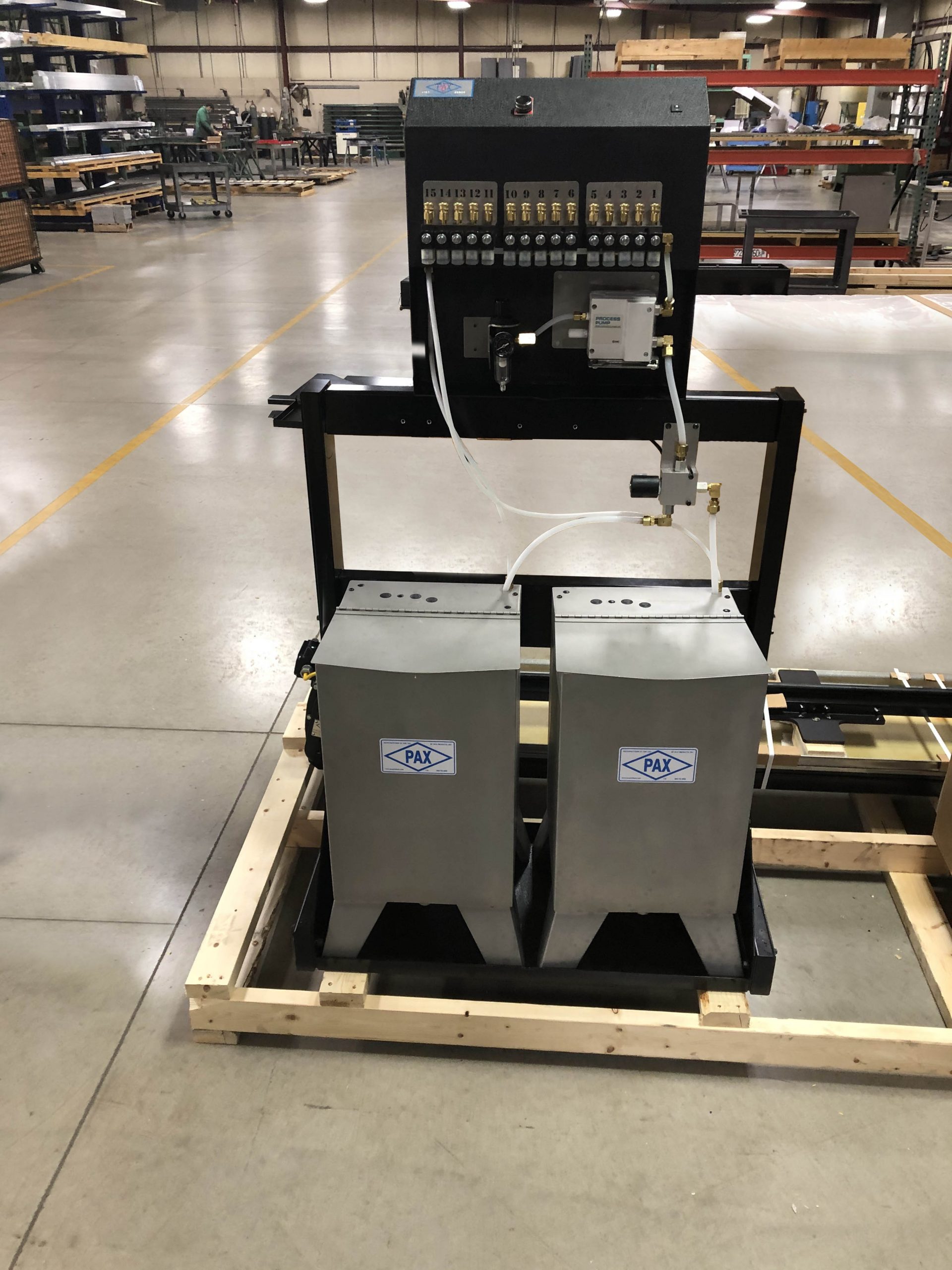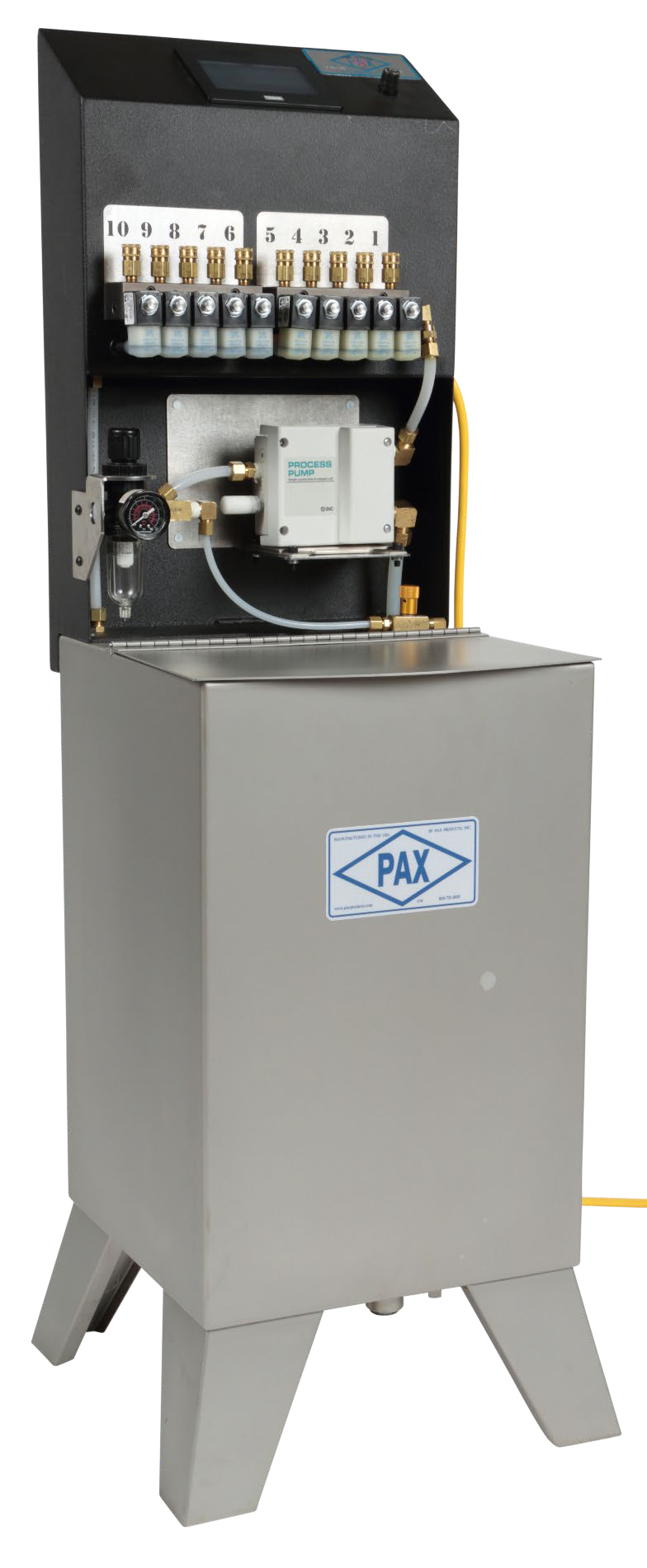 Each solenoid valve can be independently controlled and may be programmed to spray at different intervals, and for different durations (minimum 20 milli-seconds) during a press cycle. Pax’s optional PLC control or an alternate, existing control be utilized to operate the system.