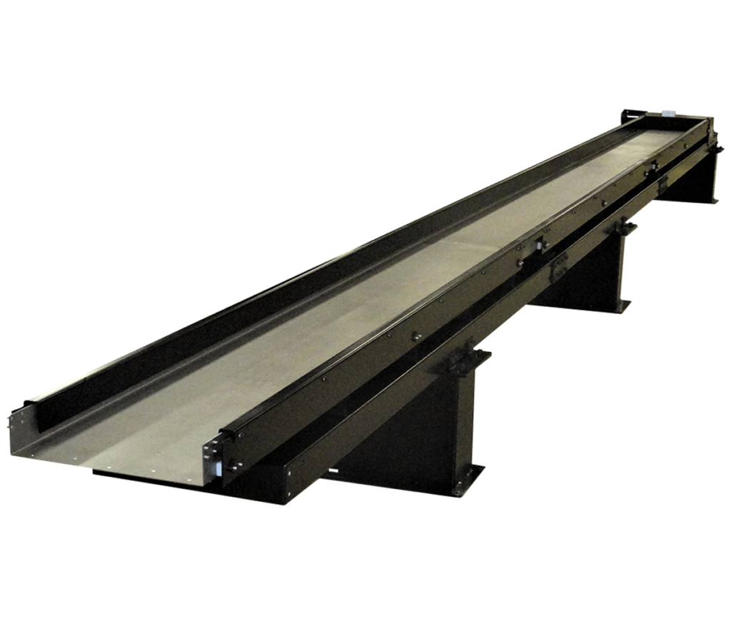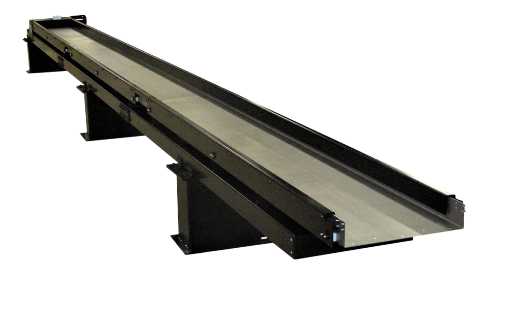 The Pax EGDF conveyor is an electrically driven, oscillating type conveyor that is designed to be a cost-effective alternative to typically hinged belts and/or magnetic conveyors. This conveyor is typically mounted either to or below the floor and it has a single tray that will conveyor material away from the conveyor drive. Additionally,