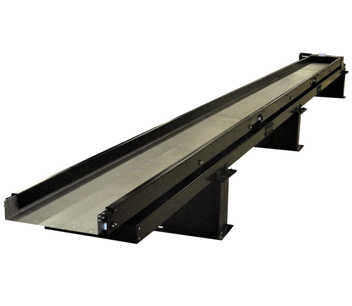 The Pax EGDF conveyor is an electrically driven, oscillating type conveyor that is designed to be a cost-effective alternative to typically hinged belts and/or magnetic conveyors. This conveyor is typically mounted either to or below the floor and it has a single tray that will conveyor material away from the conveyor drive. Additionally,
